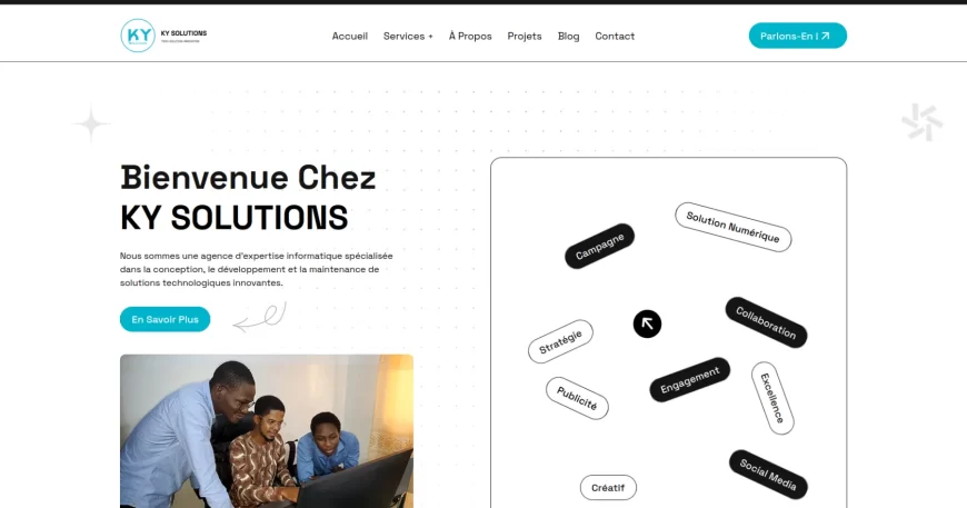 Voir le site KY-Solutions Nous avons créé le site web de cette Agence d’expertise informatique.