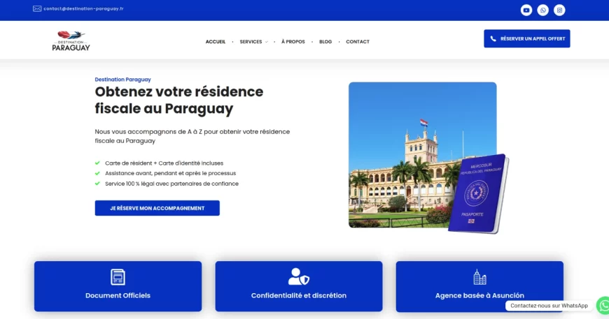 Voir le site Destination Paraguay Nous avons créé le site de cette agence afin qu’il puisse faciliter son accompagnement à toute personne désirant migrer au Paraguay.